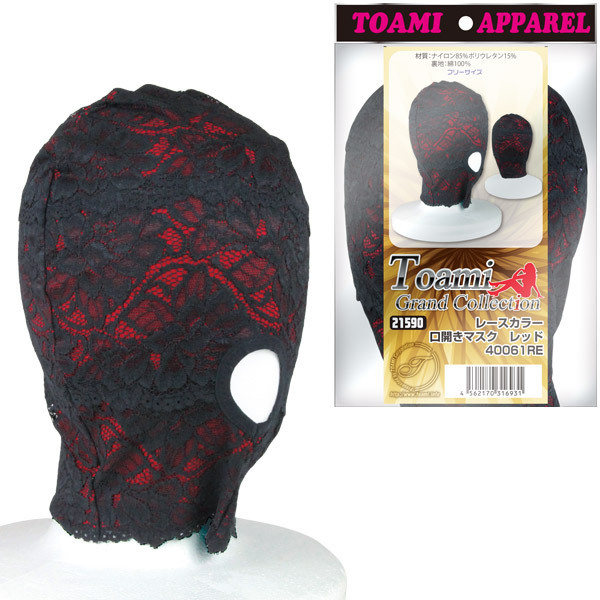 目隠し・アイマスク > レースカラー口開きマスク レッド