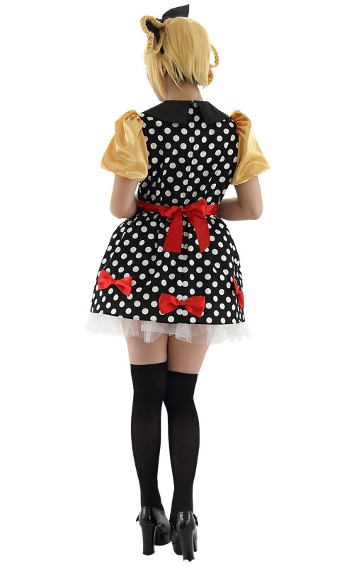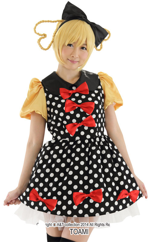 パニエ付きのドット柄ワンピに、丸襟やパフ袖、赤リボンなどなど、キュートなデザインが大集合!目立ち度100%のなりきりコスチュームです。
