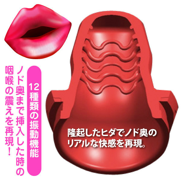 極上のフェラチオ体験!ノド奥のブルブル震える振動を再現したレッドカラーの電動オナホール。