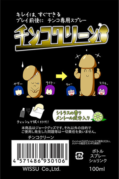 プレイ前後のエチケットにサッとひと拭きでリフレッシュ!爽快なメントール入りのペニス専用スプレー式クリーナー「チンコクリーン 100ml」。