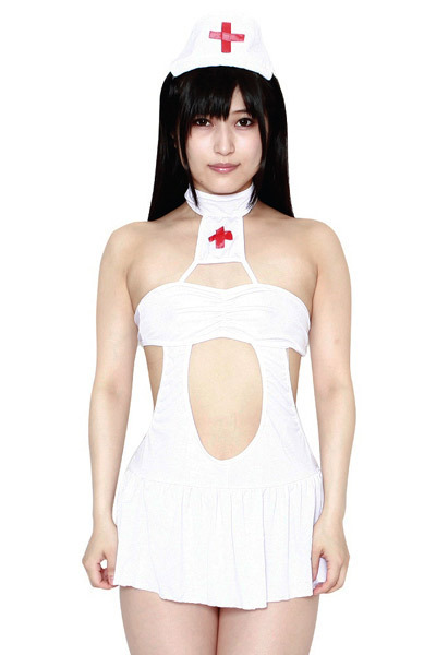 大胆不敵な肌見せでセクシーに誘惑するホワイトカラーのナースコスプレ。