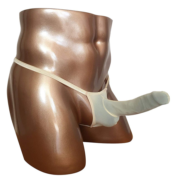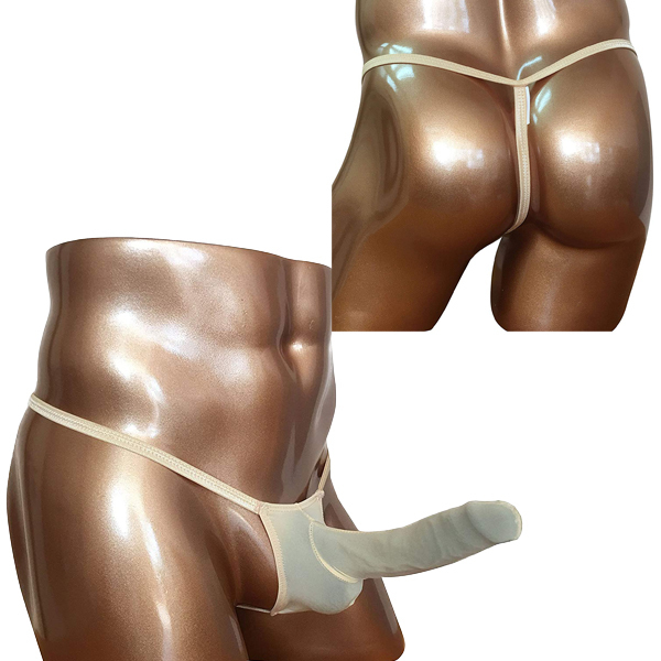 貴男の竿を包み込む収納ポケット付きメンズ用Tバック(クリーム)。