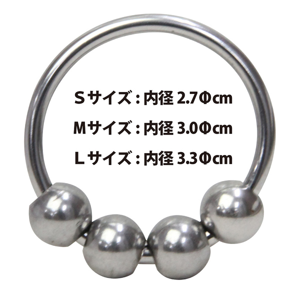 カリ首を締め付け男性をサポート!左右自在に可動する4つの金属ボールでパートナーのGスポをゴリゴリと刺激する♪拘束感が味わえるほか、プレイを一層盛り上げてくれる金属製のコックリングです。