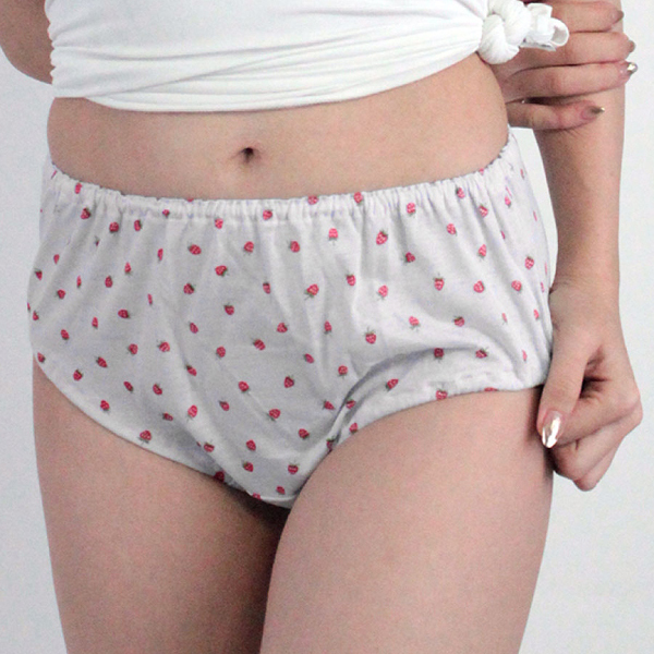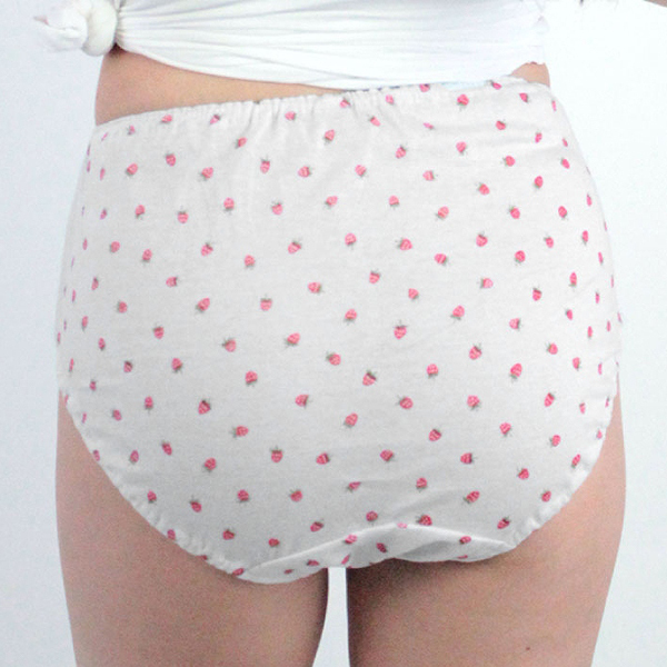 ショーツ・パンティ > 肌なじみの良いイチゴ柄コットン深履きショーツ ホワイト