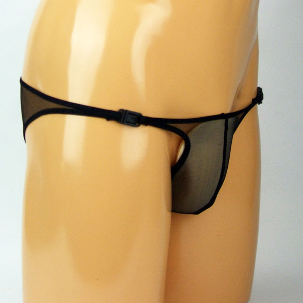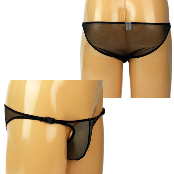 男性用ショーツ・ビキニ > メンズ キラキラシースルーワンタッチバックル付きハーフバック ブラック