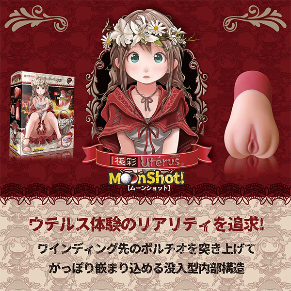 超肉厚だからこそ実現した「超ワインディング」、交互に重なる肉ヒダウイングを進むと子宮口に到達♪ムーンショットエリアで先端を包み込まれながら最奥部へ侵入せよ!重量感たっぷりな肉厚もりまんボディに美しい極彩成形が施された野心的な快感が堪能できる極彩ウテルスのムーンショットオナホ♪生身の人間とのセックスより気持ちいい!それぐらいに急進的なイノベーションでかなり変化球な刺激が堪能できるオナホールです♪素材には食品衛生法第370号準拠の「ラブラバスキン(Love Lover)」を採用したムーンショット型フルスペックハンドオナホールとなっています。