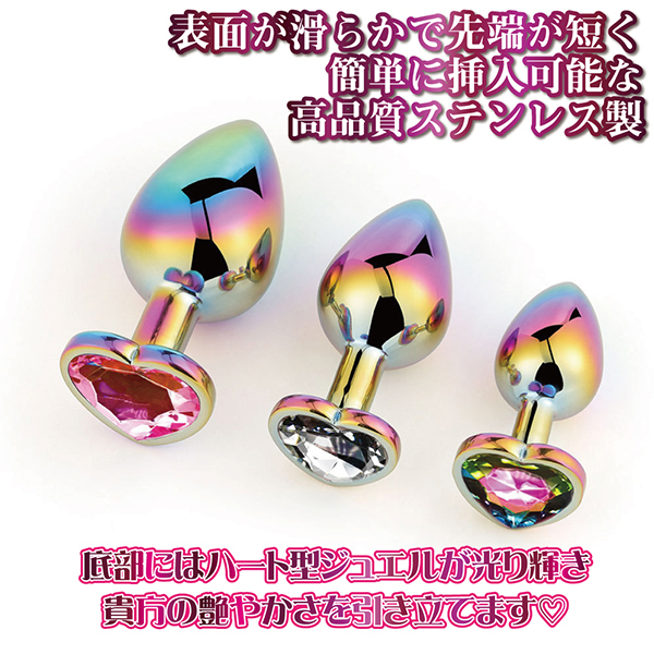先端からテールまでラブリーに魅せてくれるマルチカラーハートプラグハート形のアナルプラグです♪高品質なステンレス製で表面はなめらか。