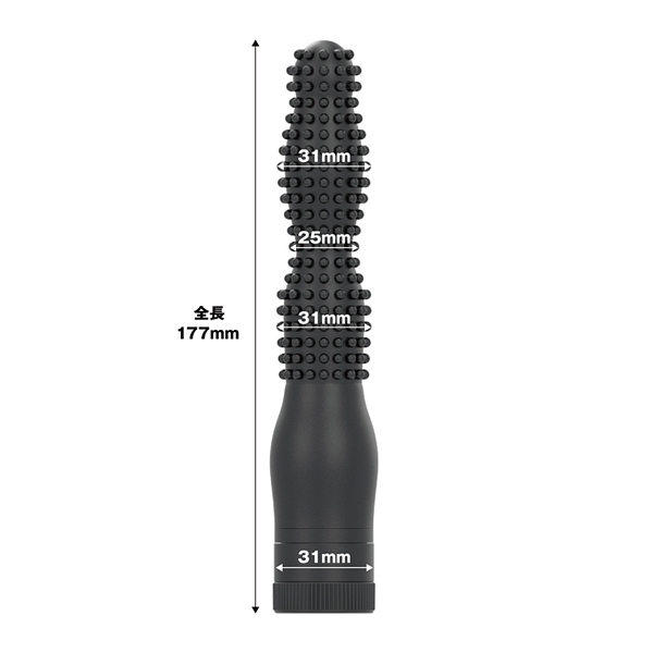 パッケージ:24.5×8.5×3.8cm 本体:17.7×3.1cm・挿入部直径:2.5〜3.1cm 電池:単四電池×2本使用
