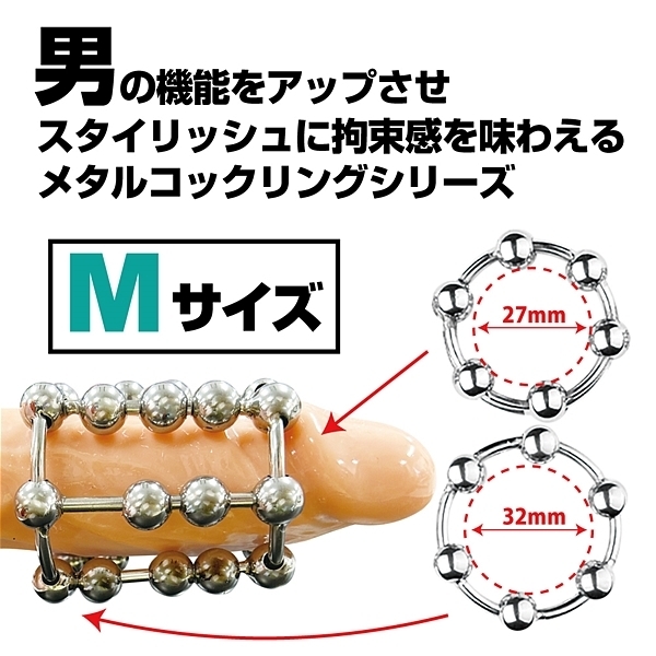 男の機能をアップさせスタイリッシュに拘束感を味わえるメタルコックリングシリーズ!中間に配置された2個と3個のメタルボールが、動く度に、上下へスライド。