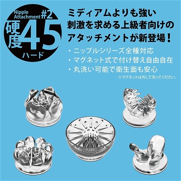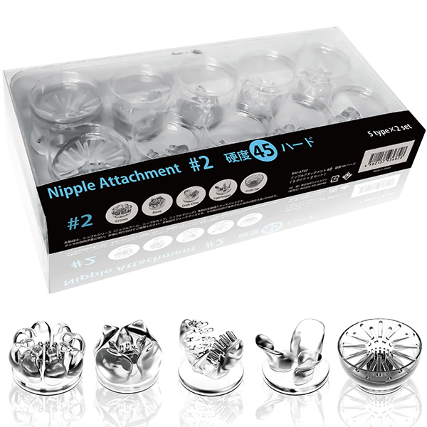 個性あふれる5種のアタッチメントを、両乳首に使えるよう、すべて2個ずつご用意。