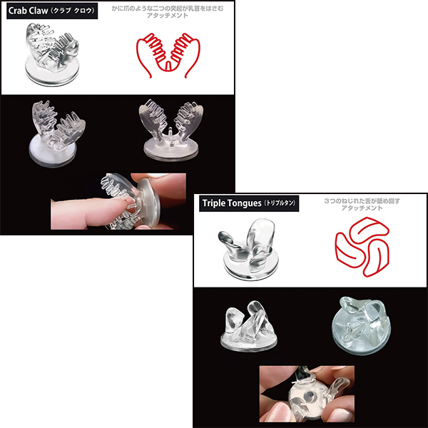 ●Crab Claw(クラブクロウ)カニ爪のようなユニーク形状が、がっちり乳首を挟み込むアタッチメント。