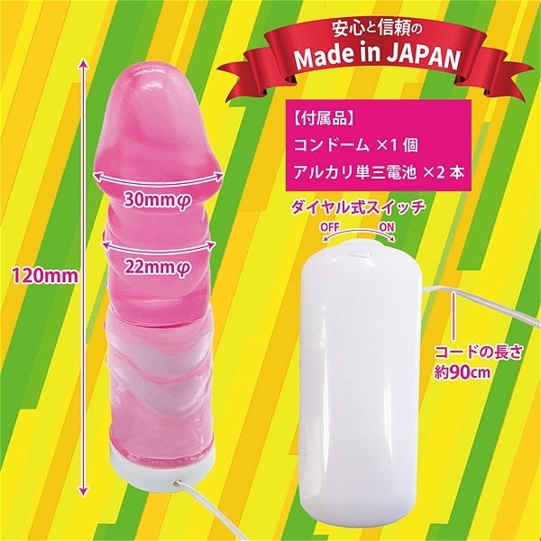 カリ高で、このもちもち弾力素材の柔らかさがたまらない!アルカリ電池&バイブカバー用のコンドーム同梱で即使用可能。