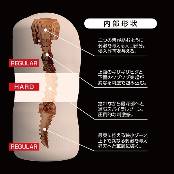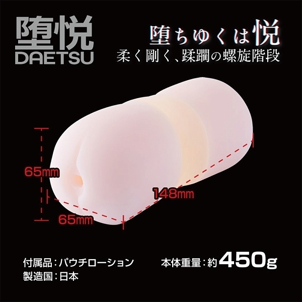 堕悦は硬度の異なる二つの素材を三層に配置し、柔・硬・柔の挿入感を実現しました。