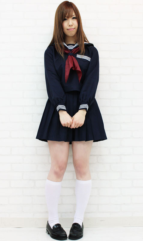 コスプレ衣装の王道!シンプルなのにとっても可愛い紺色の長袖セーラー服。