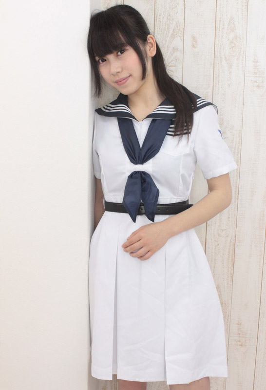 ちょっぴり長め丈の夏服ワンピースが清楚な印象!ベルトでウエストマークされるので脚長効果も抜群!もちろん紺色のスカーフもセットです。