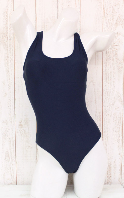 ちょっぴりセクシーなハイレグデザイン!胸パッド入り、しっかり仕立ての濃紺スクール水着。