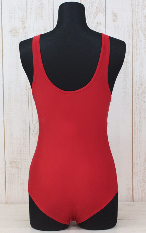 腰に水抜きのついた定番の旧スクも、赤色だと新鮮!サイドに縦ラインを入れたこだわりデザインのスクール水着コスチュームです。