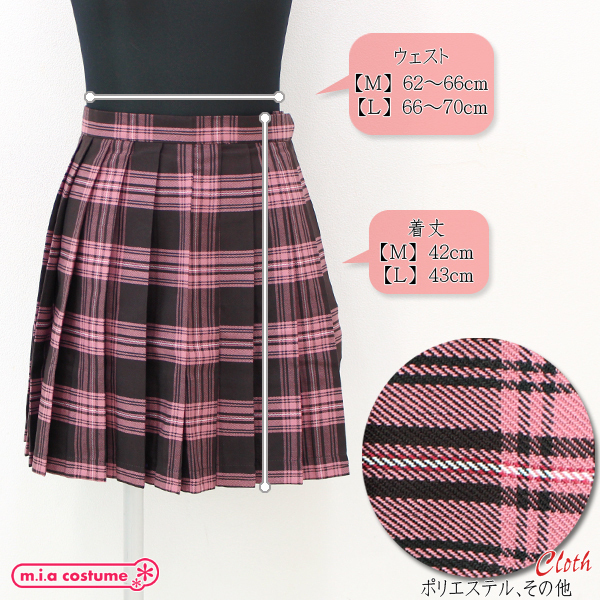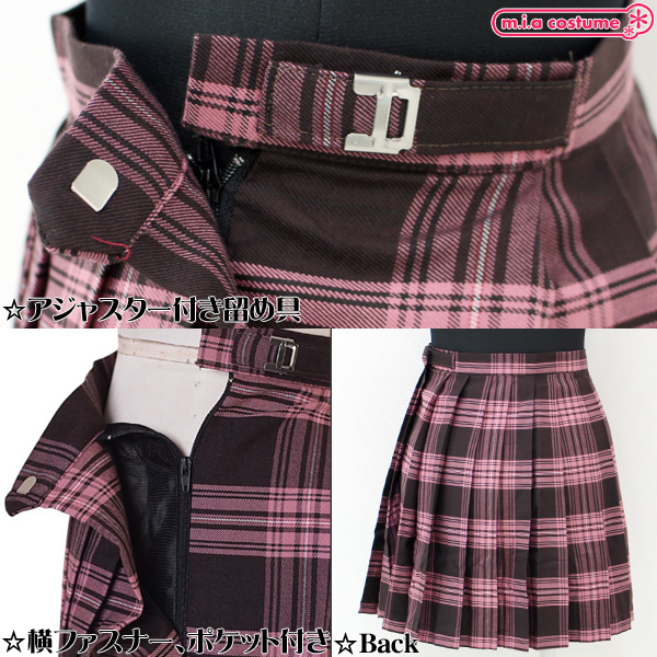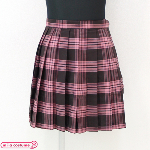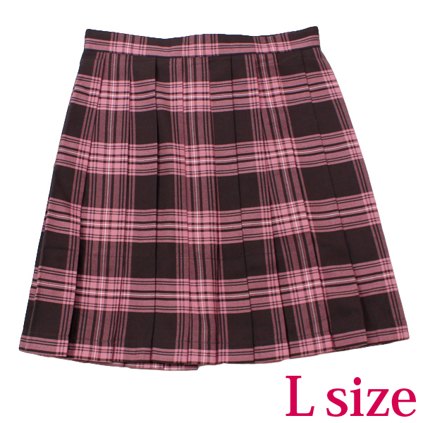 ポケット付きのチェック柄プリーツスカート単品 ピンク×ブラウン Lサイズ