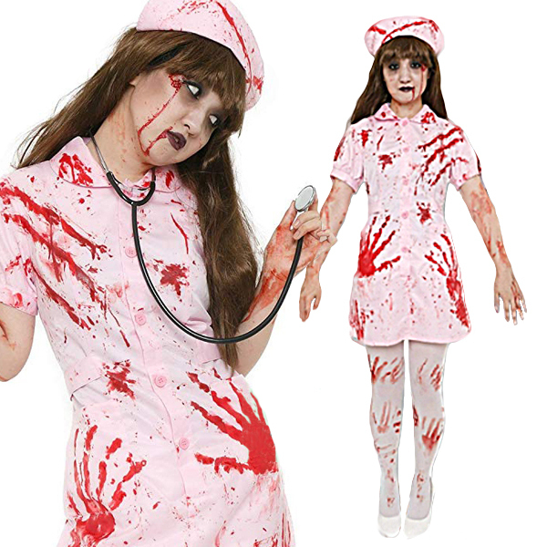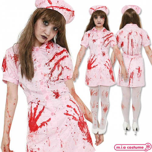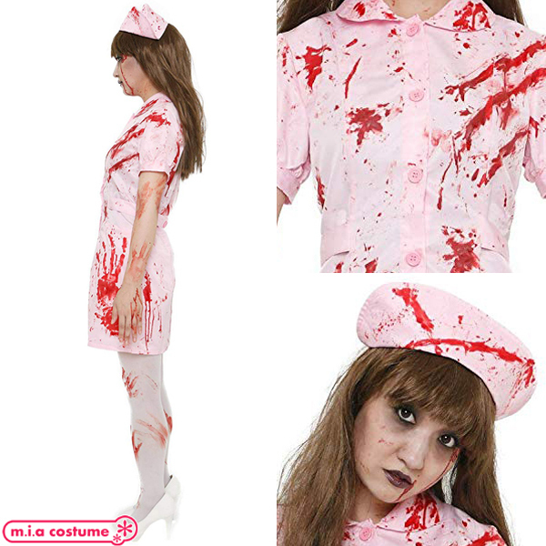 ハロウィン大人気のゾンビなナースになりきろう♪ワンピース、ナースキャップ、血糊がセットになった3点セット。