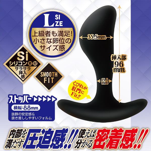前立腺をプッシュするたまご型ヘッドで前立腺を拡張&開発♪サラサラシリコン素材で挿れ心地なめらか!お尻へのフィット感が抜群なので挿れっぱでもOKです♪ストッパーは安定感抜群のフォルムなので抜き差ししやすく扱いやすい!使えばわかるこの挿れ心地♪こちらはLサイズで上級者でも大満足の小さな卵並みのサイズ感です。