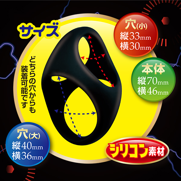 アソコを強力に圧迫!!マックスパワーを引き出すトリプルホールドリング!!竿・根元・睾丸の3点を圧迫し、あなたに眠る力をギリギリまで引き出す。