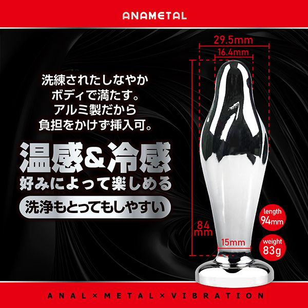 遠隔リモートプレイが可能なアナル用メタルプラグ。