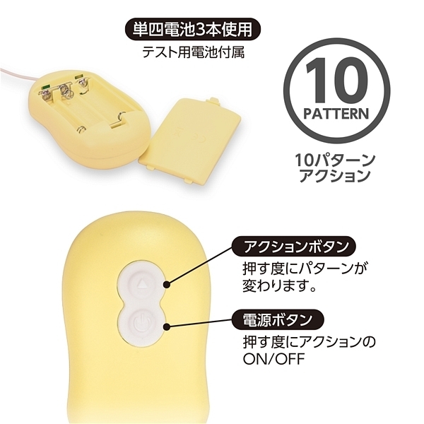 コントローラーの下側からコードが出ているためセルフプレイ時も通常時もコードの煩わしさが軽減されたスタイリッシュデザインのローターです♪握れば分かる使いやすさがウリで、他にはない使いやすさを重視したアンダーコードスタイルが特徴!単四電池3本を使用した4.5Vの強力振動マイクロモーターが搭載されていて、小径ローターで可愛いカラーバリエーション、さらにはマット加工を施すことで上質感を極めた新型ローターです♪10パターンの振動を備え、ハイパワーの4.5V仕様!生活防水仕様なのでローター本体の水洗いもできてローター部分はマット加工だから当て心地も良好♪10パターンアクションをワンプッシュで簡単にONOFF操作が可能です。