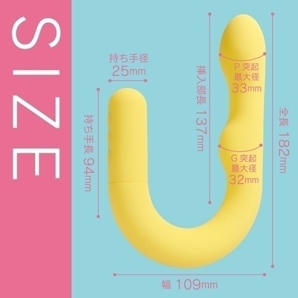 セルフケアをもっと自由に楽しめるU字型バイブレーターです♪ヘッド・Gポイント・外側刺激用の3箇所に、それぞれ独立したモーターを搭載!お好みに合わせて個別に振動を調整できるので、自分だけのリズムを作り出せます♪振動は5段階の強弱調整と5種類の多彩なパターンを組み合わせた、合計10種類を搭載!押し当てて楽しむ独特な形状が、自由な使い方をサポートします♪高性能モーターと高品質な素材を組み合わせた、安心のジャパンクオリティ!オールシリコンボディのしっとりとしたやさしい肌ざわりで、ストレスフリーな使用感を実現しました♪約120分の充電で、最大約60分の連続使用が可能!(使用環境により変動します!)IPX6対応の防水仕様で、清潔に保ちながら長くご使用いただけます♪