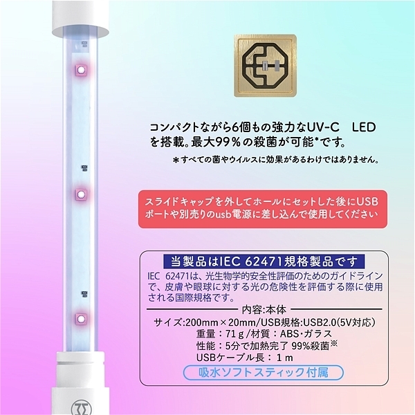 99D9“œ‹ÛAœ‹Û‚ÉÅ‚àŒø‰Ê“I‚È”g’·275nm‚ÌUVCއŠOüƒ‰ƒ“ƒv‚ð6ŒÂ“‹Ú‚µAUSB“dŒ¹‚ð“ü‚ê‚邾‚¯‚Å99D9“œ‹Û‚ª‚Å‚«‚éB