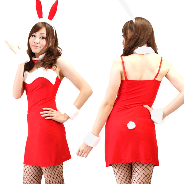 色鮮やかな赤×白のカラーが、女の子らしくてセクシーな印象のバニーガールのコスチューム。
