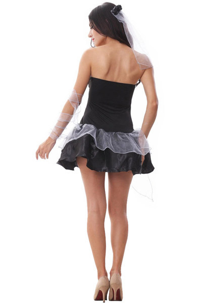 ダークなブラックカラーのベアトップワンピースに巻いたオーガンジーリボンでミイラの包帯をイメージ!腕にぐるりと巻きつけられるよう、単品リボンもセット。