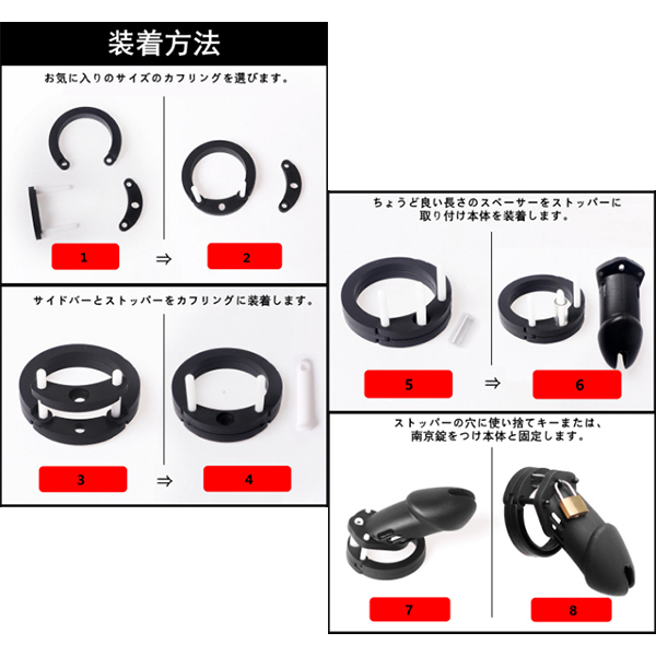 各部品を組み立てることで、あらゆるサイズに適した貞操帯が出来ます。